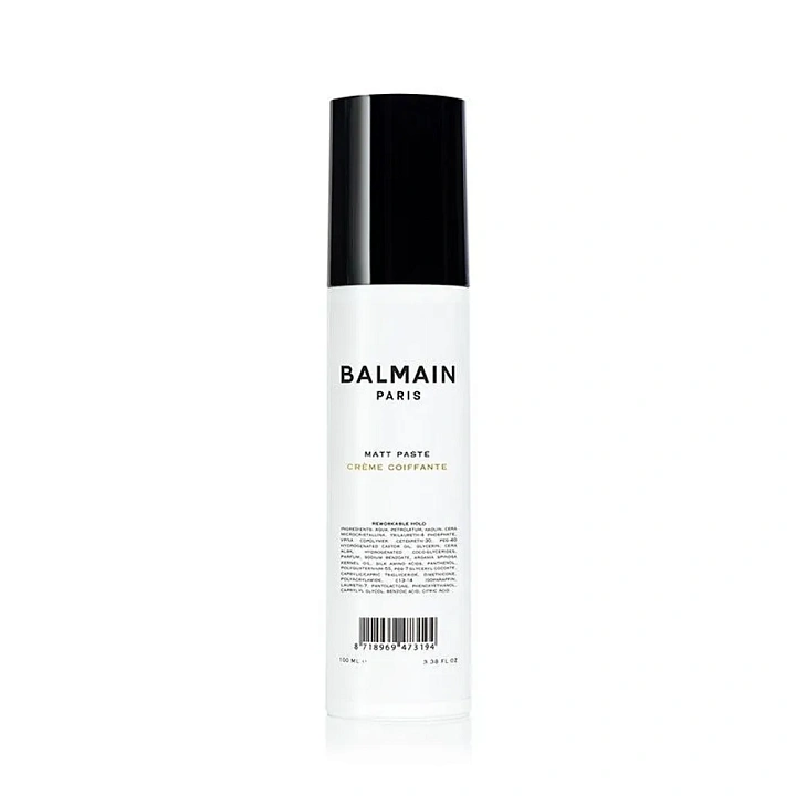 Матирующая паста Balmain Hair Couture Matt paste. Паста Balmain Hair Couture имеет гладкую текстуру и обеспечивает эластичную фиксацию и завершенный вид прически с матирующим эффектом. Паста позволяет менять форму прически, создавая максимально динамичный образ, который можно переделать в любое время дня. Она легко смывается благодаря своей формуле на водной основе.