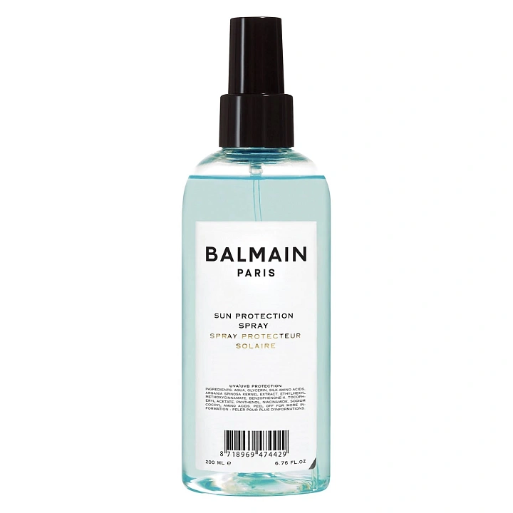 UVA-лучи вызывают выцветание цвета, а UVB-лучи ответственны за потерю белка волос, что приводит к повреждению. Формула солнцезащитного спрея Balmain обогащена защитными UVA и UVB фильтрами, которые помогают питать волосы, подвергающиеся воздействию солнца, моря или хлора. Кроме того, увлажняющая формула действует как несмываемый спрей, который сделает волосы мягкими и блестящими во время и после солнечного дня на пляже.