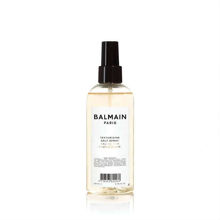 Текстурирующий солевой спрей для волос Balmain Hair Couture Texturizing salt spray. Спрей для укладки волос на основе морской соли. Придает четкость, текстуру и объем. Придает волосам гибкую фиксацию и контроль. Обогащен протеином шелка и Аргановым маслом для обеспечения баланса влаги. Влагостойкий.