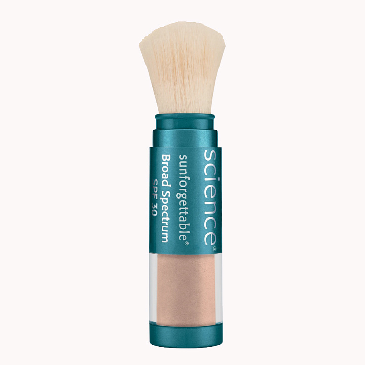 Если желателен цветовой оттенок, попробуйте поверх этой пудры наносить минеральную рассыпчатую пудру с кистью-дозатором от Colorescience.