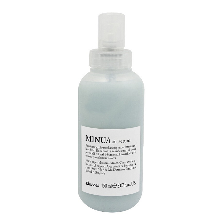 Несмываемая сыворотка Davines MINU Hair Serum деликатно ухаживает, сохраняя цвет окрашенных волос и придаёт волосам блеск и шелковистость. Идеально в сочетании с шампунем и бальзамом MINU. Подходит для окрашенных волос. Содержит экстракт цветов каперсника – многолетнего тропического кустарника, выращенного в Средиземноморье. Он ускоряет регенерацию тканей, снимает раздражения кожи, питает волосяные фолликулы. Также в активную формулу средства входит кверцетин – мощный антиоксидант, защищающий волосы от разрушительного действия внешних факторов и стимулирующий синтез коллагена. Полифенолы помогают сохранить яркий оттенок волос, полученный в салоне, стимулируют микроциркуляцию крови и тем самым способствуют притоку к коже головы питательных веществ. pH 4.5.
