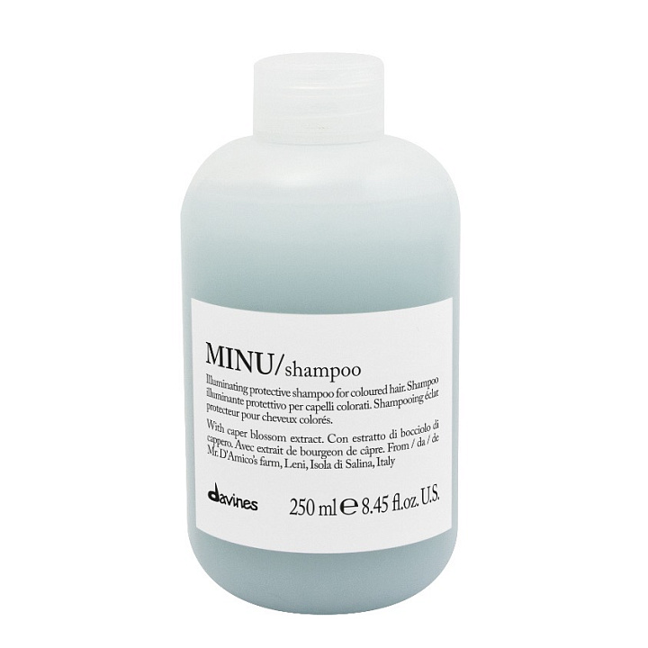 Защитный шампунь Davines MINU Shampoo мягко очищает волосы, сохраняя цвет окрашенных волос и придаёт волосам блеск и шелковистость. Идеально в сочетании с кондиционером MINU. Подходит для окрашенных волос. Содержит экстракт цветов каперсника – многолетнего тропического кустарника, выращенного в Средиземноморье. Он ускоряет регенерацию тканей, снимает раздражения кожи, питает волосяные фолликулы. Также в активную формулу средства входит кверцетин – мощный антиоксидант, защищающий волосы от разрушительного действия внешних факторов и стимулирующий синтез коллагена. Полифенолы помогают сохранить яркий оттенок волос, полученный в салоне, стимулируют микроциркуляцию крови и тем самым способствуют притоку к коже головы питательных веществ. Не содержит сульфатов и парабенов. pH 5.3.