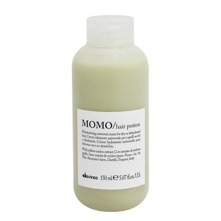 Универсальный несмываемый крем Davines MOMO Hair Potion деликатно увлажняет волосы. Придает локонам блеск и шелковистость. Идеально в сочетании с шампунем и бальзамом MOMO. Подходит для сухих и обезвоженных волос. Содержит экстракт желтой дыни сорта Картуккьяру из Пачеко, выращенной в рамках программы Slow Food Presidium. Формула, насыщенная витаминами и минеральными солями, обеспечивает долговременное увлажнение волос. pH 5.3
