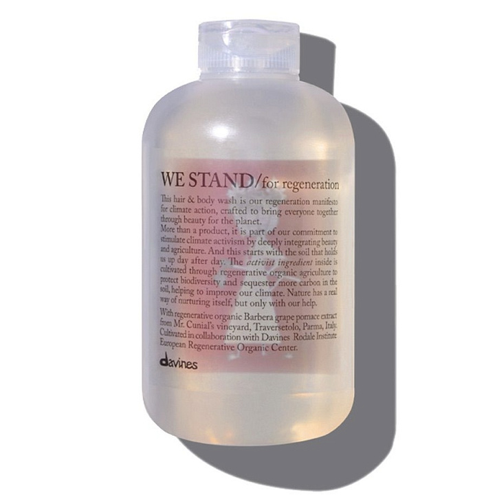 Деликатный шампунь для волос и тела Davines We Stand For Regeneration делает кожу мягкой, а волосы блестящими и шелковистыми. Содержит экстракт зеленого аниса с фермы синьора Корадетти из Асколи-Пичено, Италия, а также активный ингредиент из выжимки винограда сорта Барбера из виноградников синьора Куньяла, Парма, Италия. Ингредиенты способствуют дополнительному увлажнению кожи и волос. Экстракты активных компонентов в составе продукта выращены на органических сельских хозяйствах, которые способствуют восстановлению почвы, что положительно влияет на климат планеты. Подходит для любого типа волос и кожи.