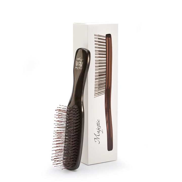 Расческа для ослабленных волос Majestic Black Coffee предназначена для мытья головы и массажа. 372 зубчика тщательно очищают более сорока тысяч пор от скопившихся загрязнений, а эффект легкого пилинга обеспечивает устранение старых клеток - кожа начинает дышать. Массаж усиливает приток крови к корням волос - это благоприятно воздействует на волосяные фолликулы, в том числе спящие - к ним поступает больше микро- и макроэлементов.