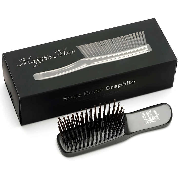 Расчcека по уходу за кожей головы и бороды для мужчин. Она работает также как и большие модели Majestic и применяется для мытья головы и массажа. 284 зубчика с литыми наконечниками тщательно очищают более сорока тысяч пор от скопившихся загрязнений, а эффект легкого пилинга обеспечивает устранение старых клеток - кожа начинает дышать.