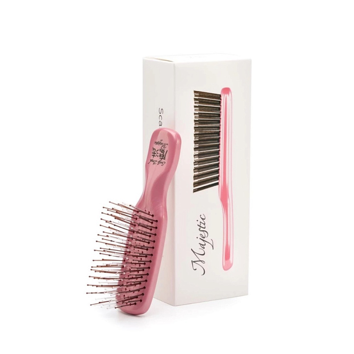 Расческа для ослабленных волос Majestic Pastel Pink Mini имеет 198 зубчиков с литыми наконечниками, предназначена для ослабленных волос: она очищает более 150 тысяч пор от скопившихся загрязнений и обеспечивает эффект легкого пилинга – старые клетки устраняются, и кожа буквально начинает дышать.