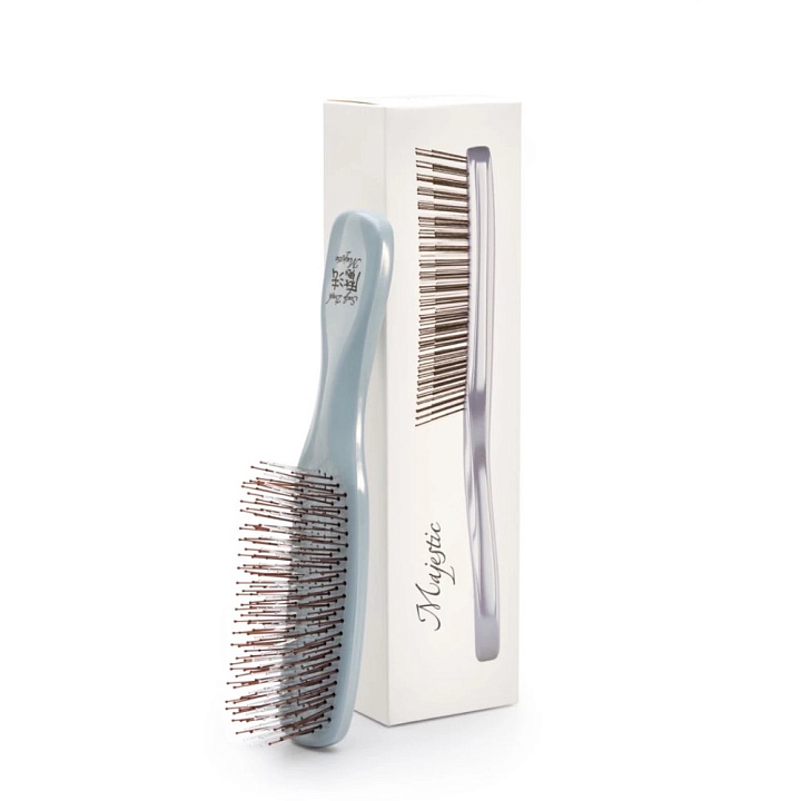 Расческа для ослабленных волос Majestic Pearl Gray предназначена для мытья головы и массажа. 372 зубчика тщательно очищают более сорока тысяч пор от скопившихся загрязнений, а эффект легкого пилинга обеспечивает устранение старых клеток - кожа начинает дышать. Массаж усиливает приток крови к корням волос - это благоприятно воздействует на волосяные фолликулы, в том числе спящие - к ним поступает больше микро- и макроэлементов.