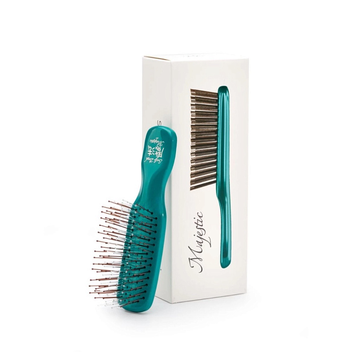 Расческа для ослабленных волос Majestic Pearl Green Mini имеет 198 зубчиков с литыми наконечниками, предназначена для ослабленных волос: она очищает более 150 тысяч пор от скопившихся загрязнений и обеспечивает эффект легкого пилинга – старые клетки устраняются, и кожа буквально начинает дышать.