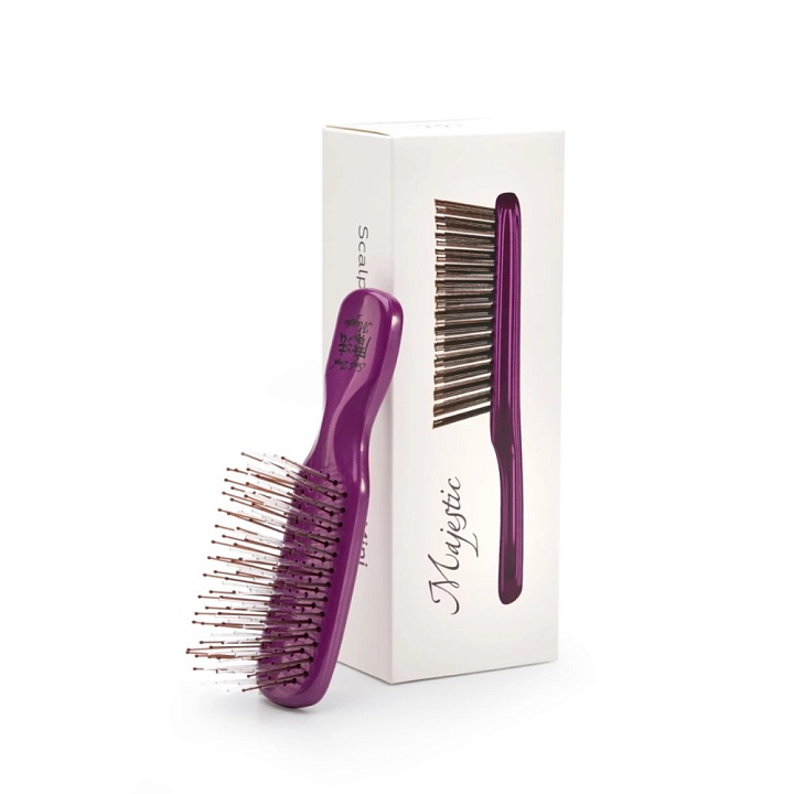 Расческа для ослабленных волос Majestic Pearl Violet Mini имеет 198 зубчиков с литыми наконечниками, предназначена для ослабленных волос: она очищает более 150 тысяч пор от скопившихся загрязнений и обеспечивает эффект легкого пилинга – старые клетки устраняются, и кожа буквально начинает дышать.