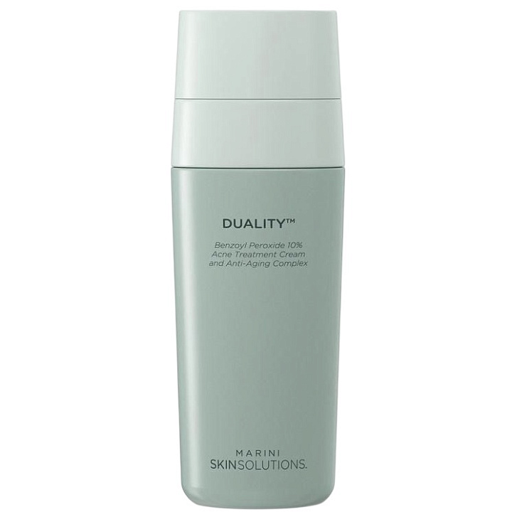 Крем-акселератор Marini SkinSolutions Duality, состоящий из 2-х капсул на основе 0.6% ретинола и 10% бензоилпероксида, для комплексного решения проблемы возрастного акне (анти-эйдж+акне). Ультрамикронизированная формула активных компонентов обеспечивает более глубокое проникновение и эффективное лечения даже самой сложной угревой сыпи без сухости и раздражения. Активная форма ретинола, антивозрастные пептиды и мощные антиоксиданты объединены для максимального эффекта в борьбе против старения. Противовоспалительные и успокаивающие компоненты обеспечивают дополнительный комфорт применения препарата. Препарат обладает великолепными увлажняющими свойствами для улучшения гидратации и барьерных функций кожи.