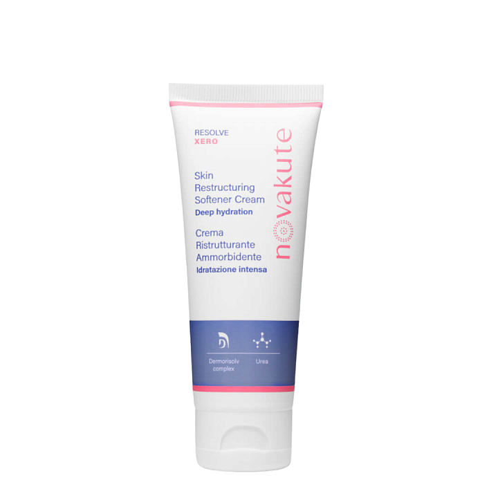 Восстанавливающий крем Novakute Skin Restructuring Softener Cream интенсивно увлажняет, питает и смягчает кожу. Разработан для ухода за огрубевшей и утолщённой кожей. Благодаря инновационному комплексу Dermorisolv® и свойствам мочевины, он помогает ускорить регенерацию клеток и обеспечивает мгновенный защитный эффект. Крем поддерживает оптимальный уровень увлажнения, делая кожу эластичной и гладкой. Молочная кислота нежно отшелушивает омертвевшие клетки кожи и способствует нормализации естественной выработки гиалуроновой кислоты. В результате регулярного использования кожа становится заметно более свежей и сияющей. Крем обладает насыщенной, мягкой текстурой и быстро впитывается. Его можно использовать при лечении дерматитов, сопровождающихся сильной сухостью, кератозом и псориазом. Также средство успокаивает гиперкератоз и локальный зуд.