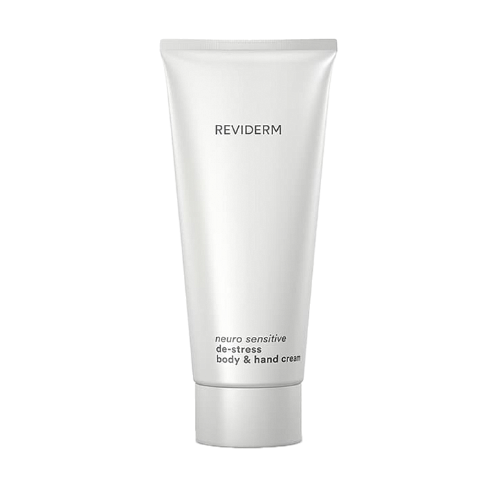 Крем обезвоженной и сухой кожи тела и рук Reviderm Neuro sensitive de-stress body & hand cream универсальный продукт, который станет для вас незаменимым в холодный сезон. Уже после первого применения ваша кожа станет увлажненной, мягкой и нежной на ощупь. Активная формула крема снимает раздражение и убирает любой дискомфорт. Особенно хорошо средство работает на огрубевших участках кожи, смягчая их. Препятствует возникновению экземы на коже рук и тела