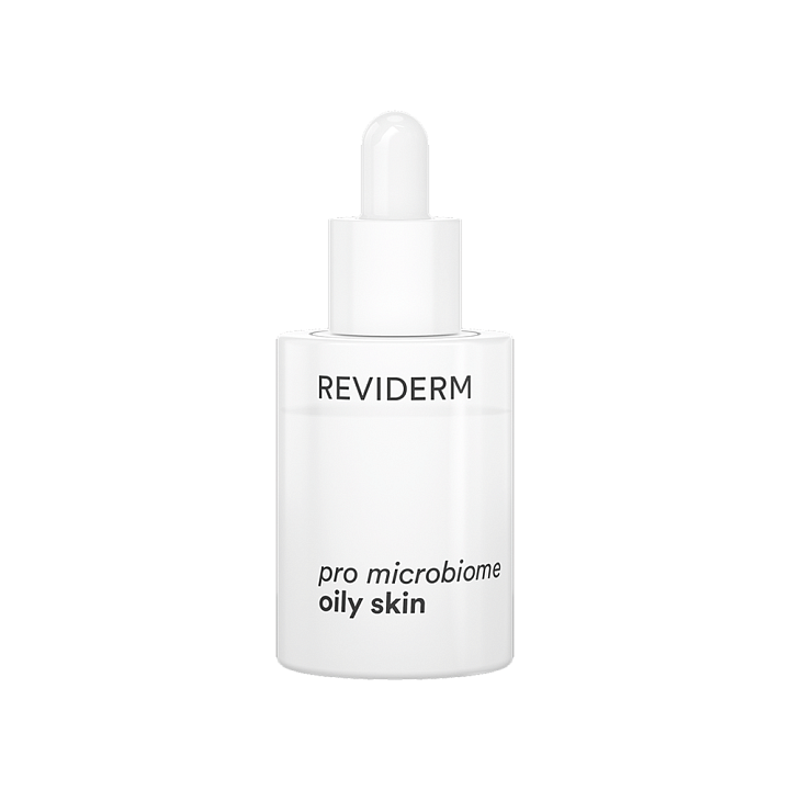 Сыворотка для восстановления микробиома жирной кожи Reviderm Pro microbiome oily skin. Специальный уход для поддержания здоровья микробиома жирной кожи. Микробиомный комплекс – это синергетическая комбинация пробиотиков, пребиотиков и «коммуникационных проводников», специально разработанная для потребностей жирной кожи. Комплекс стабилизирует естественную микрофлору, увеличивает представительство одних бактерий, предотвращает чрезмерное размножение других и развитие себореи. Положительно влияет на коммуникацию микроорганизмов, снижает образование биопленок и вредную активность (вирулентность) бактерий. Азелаиновая кислота нормализует выработку кожного сала, подавляет образование пигментных пятен, предотвращает воспаления. Выравнивается тон и цвет лица.