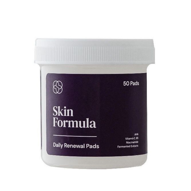 Мультивитаминные обновляющие салфетки Skin Formula Daily Renewal Pads направлены на борьбу с существующими несовершенствами кожи. Препарат имеет 3 вида эксфолиации: энзимную – за счет ферментированных фильтратов, химическую – за счет гликолевой и молочной кислот и механическое воздействие, благодаря особой текстуре диска. Диски прекрасно очищают кожу от загрязнений, обновляют клетки эпидермиса, выравнивают рельеф кожи и регулируют выработку кожного себума, уменьшают видимость пигментации и пятен постакне, помогают в борьбе с черными точками и сужают поры. Кислоты в низкой концентрации совместно с пробиотическим комплексом эффективно разглаживают и интенсивно увлажняют кожу, восстанавливают защитную функцию, уменьшая чувствительность, мягко полируют поверхность кожи и запускают процессы омоложения. Это отличный вариант привести Вашу кожу в порядок за считанные минуты, сделать ее гладкой, придать лицу здоровое сияние.