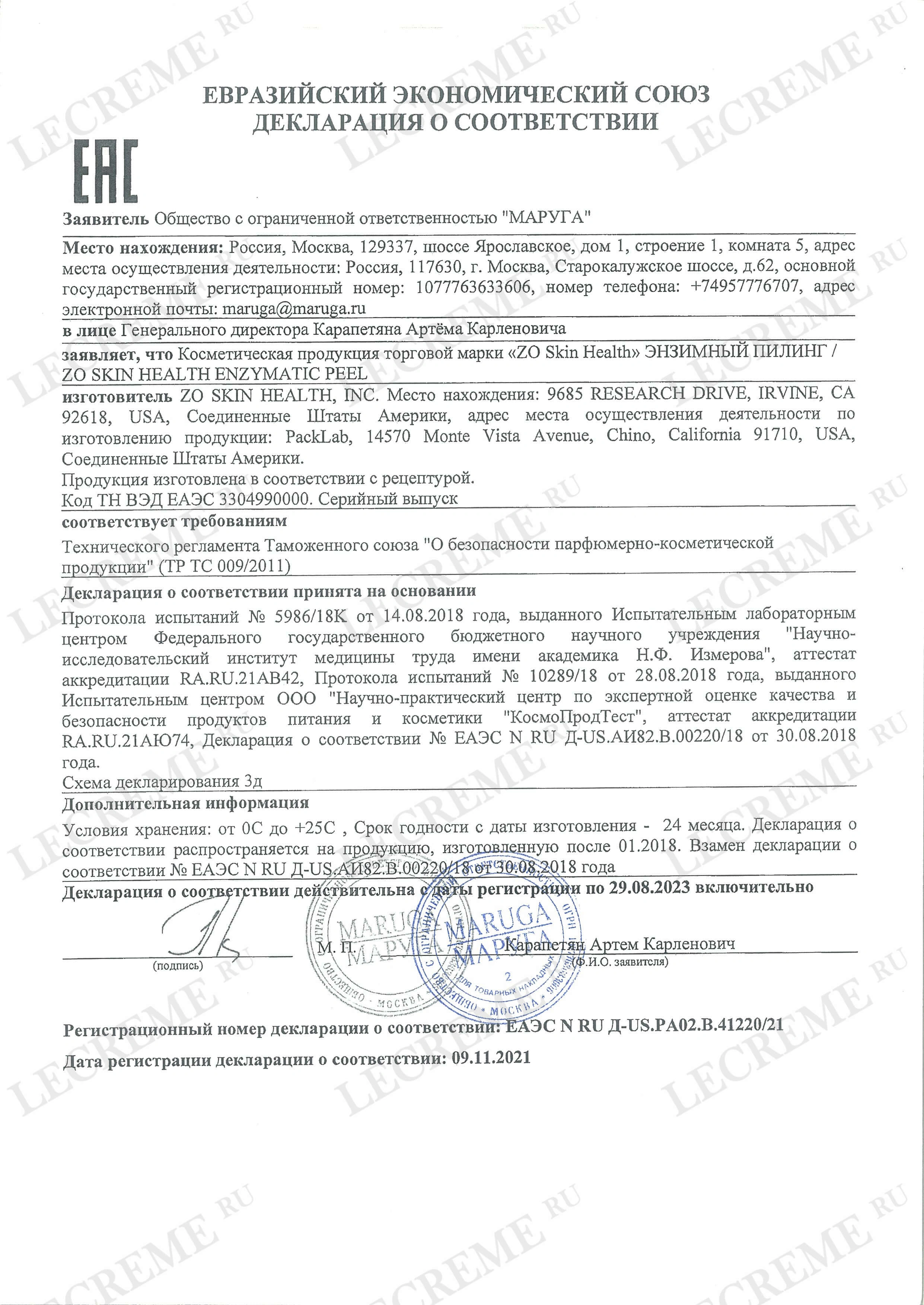 Энзимный пилинг ENZYMATIC PEEL предназначен для домашнего использования. Он обладает деликатным действием, улучшает структуру кожи, устраняет признаки фотостарения, выравнивает тон кожи, стимулирует клеточное обновление. ZO Skin Health Enzymatic Peel особенно хорошо работает на тусклой, грубой коже с расширенными порами – он делает ее более гладкой, плотной и здоровой, выравнивая ее тон и придавая сияние. Энзимный пилинг стимулирует эксфолиацию, выравнивает микрорельеф и тон кожи, снижает видимость пигментных пятен. Интенсивно увлажняет, восполняет недостаток влаги и липидов. Смягчает и успокаивает кожу.